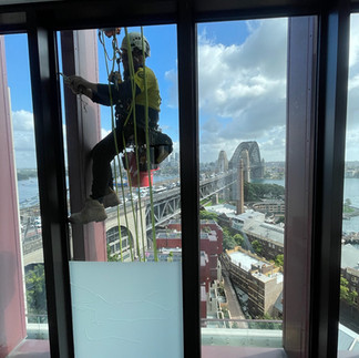 Rope access suits high rise glass cleaning Sydney sites with tricky geometry